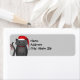 Dessin d'un chat gris foncé avec un sourire sinistre, mangeant un sucre de canne et portant un chapeau de Père Noël. Imprimé avec un arrière - plan gris clair sur les étiquettes d'adresse de retour.