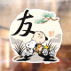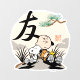 Check out this adorable Japanese themed graphic of Snoopy, Charlie Brown, and Woodstock relaxing together in the evening. Featuring the symbol for "Friend" and a red stamp that reads "Snoopy".