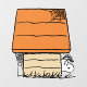 This Peanuts design depicts Snoopy, resting partially inside his iconic doghouse, which has been decorated for Halloween. The roof of the doghouse is painted a vibrant orange, and there are spooky cobwebs adorning the corners both on the roof and on the walls, adding to the eerie, festive atmosphere. Snoopy, peeking out from the bottom right, seems to be keeping watch with a calm, almost sleepy expression, adding a sense of quiet Halloween charm to the scene.