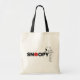 Snoopy relaxes against a rock on top of his name in English and Japanese.