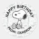 Add this cute Peanuts Happy Birthday sticker featuring Snoopy to any gift.