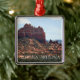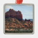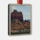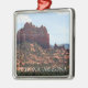 Square premium ornament with an image of a watercolor painting of a predominant and recognizable red rock formation close to the town of Sedona. At the base of the Crimson Cliffs is the distinguished landmark Snoopy Rock, so named because of its likeness to Snoopy the dog from the Peanuts cartoons.