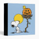 Celebrate Halloween with this charming design featuring Snoopy, the beloved beagle, gazing up at the warm glow of a full autumn moon. Woodstock sits cheerfully atop a playful jack-o'-lantern nestled in his tree-top perch. With classic Peanuts charm, this design captures the magic of the Halloween season, perfect for adding a touch of nostalgia and whimsy to any holiday occasion. Ideal for fans of Snoopy and timeless Halloween fun!