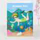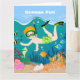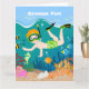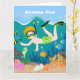 This is an illustration that features a vibrant underwater scene with a boy snorkelling close to tropical fish, coral reefs, and other sea life. Every summer day is a party for kids on the beach. The seaside is the place to go and have fun with friends, swimming and diving, maybe celebrating their birthday too! Don't forget the towel, the hat, and the sun protector! You can use this Birthday Greeting Card for a diver but also a swimmer, any kid who is fond of the sea, or a girl that was born in the summertime. You can personalize the interior of this Greeting Card with a special message. Choose the font and the colour. It's easy!