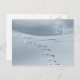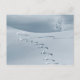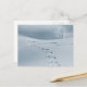 Snow covered landscape with ski tracks tree birds postcard