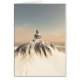 Illustration of a giant statue of Buddha on top of a lonely snow covered mountain peak