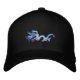 Fits well due to elastic edging, not adjustable.  Good qualty material. Good quality embroidering.  Subtle lettering (white on beige)  just as my wife likes.