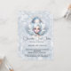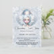 A beautiful and magical glowing portal has a bright shining star inside it and is framed by delicate white snowflakes. An angelic fair skinned fairy pixie princess with large blue eye and long white hair is standing in front of the portal with her ethereal white wings spread wide open. She too is framed by soft white falling snow dancing in the air against a dusky pale blue background. This downloadable and printable invite is ideal for a fairytale; fairy; winter wonderland, quinceanera, 16th mythical birthday or wedding celebration. Simply customize the templates to suit your requirements.
