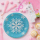 Snow Flakes Aqua White Paper Plate