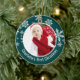 Snow Flakes Frame Baby's First Christmas Photo Ceramic Ornament. Baby's 1st Christmas custom photo custom name ceramic ornament in Dark Teal with white snowflakes frame around it, this makes a nice keepsake for your family to celebrate your newborn baby girl or baby boy's first Christmas holiday.