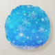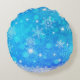 Snow flakes round throw pillow in polyester with blue and white colours.