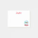 This lovely post it note features happy snowmen inside of a snow globe. With your name at the top in red text personalize yours today!