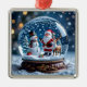Snow globe with Santa, a Reindeer and Snowman Metal Ornament