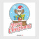 An illustration of a snow globe with santa claus owl wearing a red bonnet and long white beard with his three colourful presents for Christmas. This cute cartoon kawaii wateglobe design is a gift idea for winter holiday lovers, snowdome lovers and xmas lovers.