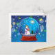Snow globe with snowman singing postcard