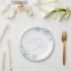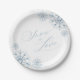 Celebrate love with our Snow in Love Bridal Shower paper plates, featuring elegant watercolor snowflakes in soft dusty blue. The modern calligraphy script and silver glitter accents add a chic, festive touch, perfect for a winter wonderland bridal shower.