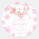 Snow in love snowflakes pink girls clothes on a line winter baby shower personalized thank you favour stickers template, pastel pink boho snowflakes baby clothes wash line with hearts baby shower favour stickers boho baby shower personalized stickers snow in love with baby personalized thank you stickers printed favour stickers winter baby shower party supplies