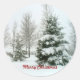 Snow-Laden Trees, Merry Christmas Classic Round Sticker