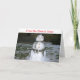 Lovely snow scene Christmas Greeting Card. Cheery Snow Lady with rocks for eyes, nose and buttons, branches for smile and arms, spruce branches for scarf and dress, and a seashell and green bush topper hat, with From Our Home to Yours written on front of card. Makes for a lovely Christmas card to send to family and friends. Click Customize to edit text inside or outside of card, if you wish. Original Photography and Card Verse Copyright © TamiraZDesigns.