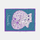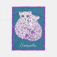 Two cuddling white snow leopard cubs with purple accents and spots on a cyan blue background are hugging and nuzzling each other. Personalize it with your own custom name. Original animal art by Alicia Marie.