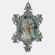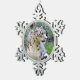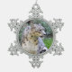 Snow leopard sitting on the grass snowflake pewter christmas ornament