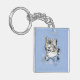 Snow Leopard Snowflakes Blue Flowers Keychain