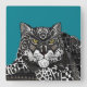 snow leopard teal blue square wall clock