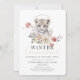 This cute "winter onederland" winter girl's first/1st birthday invitation features a baby snow leopard/leopard cub with winter floral and berries in watercolor. The reverse side features a white background with floral patterns. Personalize it for your needs. You can find more matching products at my store.