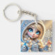 Charming snow princess adorned in intricate blue attire against a magical, snowy backdrop.