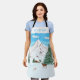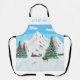 A cute apron with a beautiful winter scene including snowy mountains, rustic cabin and snow covered evergreens. Original artwork by W.B.