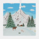 Winter scene with snowy mountains, rustic cabin and a buck overlooking the valley below him. Original artwork by W.B.