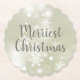 Snowflakes and stars on a beautiful sage green background, perfect for Christmas, holidays and winter themed round scallop edge heavy paper coasters. Change the wording and the font colour. MATCHING items in our store.