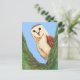 fun & cute nature inspired postcards with a traditional animal illustration, made with ink & watercolor, of a curious looking snowy owl sitting between the branches of a big green tree. great & fully customizable cards for that special person with exclusive artwork & design from natural arts.