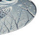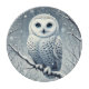Beautiful snow owl with striking blue eyes perched on a frosty tree branch during snowfall. Evoking serenity and winter wonders, this stunning image captures the essence of nature's beauty in cold seasons.