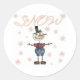 A primiscal snowman with a toothy smile and bib overalls, snowflakes, and pretty peach coloured text that reads "Snow" is featured on snowman greeting cards, holiday T-shirts nand sweatshirts, and other holiday items!