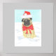11"x11" Print with Christmas pug in snow.