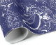 deep navy blue gift wrap with white toile de jouy inspired print. An elegant forest fairy takes a quiet stroll through a serene winter woodland, with deer, trees, and snow. Perfect for an elegant Christmas or winter holiday themed event.