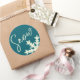 Snow script blue slate and butter elegant winter classic round sticker