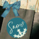 An elegant typography, script design for winter. A beautiful blue slate base with a yummy butter text colour" Snow" . Accented with a snowflake. Elegant winter design.