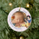 This is a charming, rounded Christmas ornament, perfect for celebrating a baby's first holiday season. The ornament frames a sweet, personalized baby photo at the center, set against a background with a cute chevron pattern. The design is beautifully accented with Disney's Snow White character illustration, surrounded by her gentle woodland friends. The border is inscribed with personalized text commemorating a First Christmas and the specific year. This stunning piece is a delightful, lasting keepsake to mark a baby's first magical Christmas!