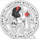 Simplified outline of Snow White about to bite into a red apple, encircled with the repeating words: "Just One Bite".