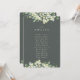 An elegant dark grey green winter wedding table number/seating chart card featuring hand painted snowberries and eucalyptus. All text is fully editable and there is space to accomodate twelve names. Once your names are input, the font size and the vertical space between lines can be altered in edit view for a better fit. Alternative designs, colours and coordinating items are available in my store.
