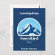 This lovely postcard with a logo from Snowbird Utah features a gorgeous blue mountain with a sunny background. It's the perfect gift for tourists on a ski vacation!