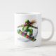 This jumbo size coffee mug is shown in white with a sports snowboarder art print.