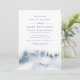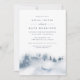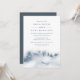 Elegant winter bridal shower invitation features a watercolor background depicting a snowy mountain landscape dotted with pine tree silhouettes in misty shades of blue and gray. Personalize with your bridal shower details in chic blue-gray lettering. A beautiful choice for elegant winter bridal showers in mountain, forest