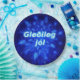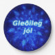 A swarm of blue fractal snowflakes. Icelandic text reading "Gleðileg jól" (Merry Christmas) appears in glowing blue and white.