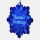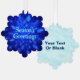 A wintry theme featuring a swarm of blue fractal snowflakes. Text reading "Season's Greetings" appears in glowing blue and white. Add your own additional text on the reverse side.