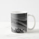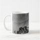 This white ceramic mug features a black and white photograph of the view from Snowdon in Wales