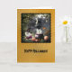 This cute Halloween Card features Snowdrop, a sweet little Maltese Dog wearing a witches hat and coat in front of a haunted house with a ghost and a cauldron of evil broth.