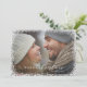 The modern design features a full-bleed photo layout with a snowy border and classic Merry Christmas greeting. The backer includes a subtle diagonally striped pattern and room to include a personalized message or additional photos.